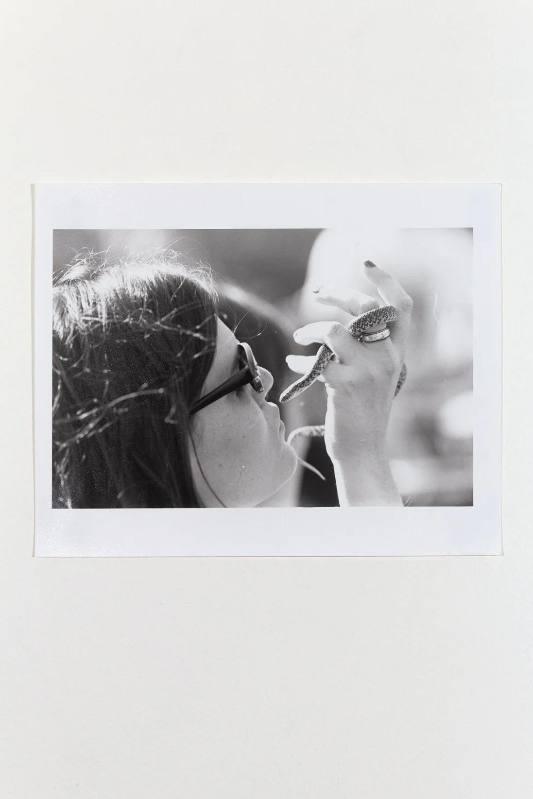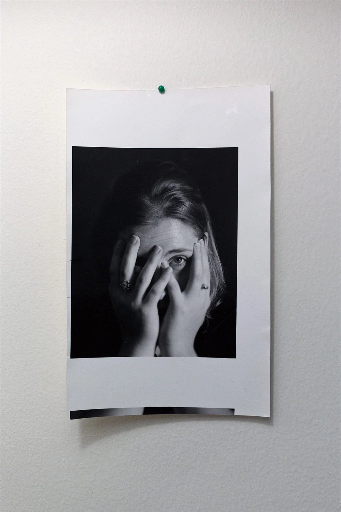 Jargon Projects is proud to present our inaugural exhibition My Girlfriend’s Aunt’s Photos from College by Dawn Biernacki, curated by Ethan Kennemer. The exhibition consists of 17 black and white photographs taken by Biernacki (the aunt of Kennemer’s partner) from 1995 - 1997 during her undergraduate studies at the University of Illinois, Urbana-Champaign. These works are also accompanied by a single sculptural piece set atop a pedestal that belonged to Biernacki’s late grandmother. The photos in the exhibition are presented in the same manner as they were during Biernacki’s class critiques — pinned and taped directly to the walls. This collection of images curated by Kennemer echoes the timelessly dramatic and juvenile, yet wholly genuine, aesthetics of student work that persist in art schools today. The exhibition aims to celebrate these creative decisions through the lens of nostalgia. While Biernacki did not go on to pursue a career in the art world, her images serve to remind artists that all ideas must start somewhere, whether they are immediately met with praise, scorn, or embarrassment, and that at some point, perhaps even 25 years down the line, their work has the chance to be recharged and reexamined.